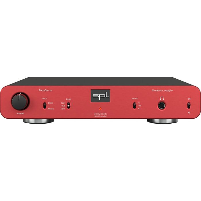 If you're looking for an austere audiophile headphone amp that sacrifices nothing in the way of sound, power, headroom, and look, and feel, the SPL Phonitor se is a suitable option. The Phonitor se, presented here in red finish, gives you the main features SPL pro-fi headphone amps are known for, such as naturalistic crossfeed and oodles of clean output power thanks to 120V VOLTAiR technology.