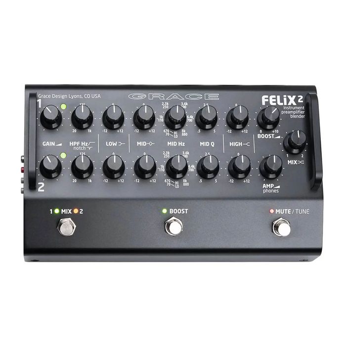 FELiX2 is a studio quality, 2 channel blending acoustic instrument and mic preamp, designed for working musicians, engineers, sound companies or venues looking for the highest quality solution for amplifying stringed instruments. FELiX2 is built into a roadworthy floor unit chassis of anodized aluminum and steel, portable enough to leave the rack at home but bring studio quality to the stage. With the same stunning audio performance and legendary reliability as Grace Design’s pro audio range, FELiX2 brings open, musical and nuanced preamplification to any performance situation.