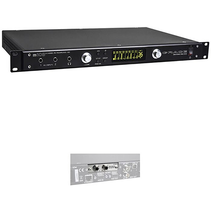 The Grace Design m108 is a rack-mountable eight-channel preamplifier and ADC providing connection points for eight microphones on the rear panel, as well as two Hi-Z instrument inputs on the front. With this unit, you can either achieve analog amplification through its transformerless, transimpedance design, or utilize its on-board conversion stages to route signal into your DAW in a variety of digital output formats, including AES, ADAT, and USB. The unit is also remote-controllable, able to receive commands from Grace's m802 remote control unit or Pro Tools via on-board 485/422 serial / MIDI ports.