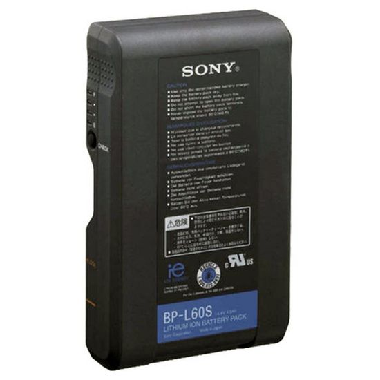 The BP-L60S from Sony is a 65Wh Li-Ion (Lithium-Ion) rechargeable battery pack. Offers energy solution requirements for camcorders, cameras, portable VTR's and other V-mount mount devices. The V-mount connector securely locks the battery to any V-shoe equipped device. A 5-step LED capacity indicator is built-in for easy reference of remaining capacity.