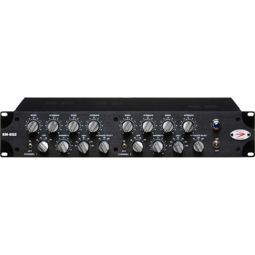 Eminently suited for tracking, mixing, or mastering, the two-channel EM-EQ2 is housed in a rugged, metal 2U chassis. It shares the same custom-milled faceplate, brushed-aluminum control knobs, big jewel power indicator lamp, and heavy-duty Carling toggle switch as the A Designs Hammer (which compliments the EM-EQ2 perfectly). Additional features include a proprietary nickel-core Cinemag output transformer, Wima capacitors, and true hard bypass. Instead of using common off-the-shelf chokes, A-Designs Audio employs a Cinemag custom wound tapped inductor.