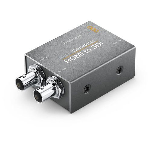 With the Blackmagic Design HDMI to SDI Micro Converter you can convert a single high-definition HDMI signal into two 3G-SDI signals for ensuring workflow compatibility in professional video environments. Input signals are detected automatically, so the converter knows the resolution and format to output.