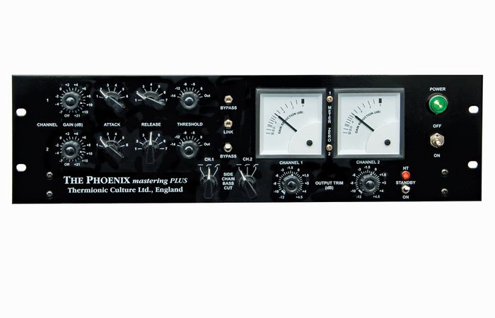 This is the latest development in the evolution of the classic Phoenix compressor, first introduced in 1998. After requests from mastering engineers the Master Phoenix was introduced in October 2006. This was more recall-able with indented pots and slightly different power supply and metering circuit, in which trimming the meter alters the current through the compression valve so compensating for valve ageing.