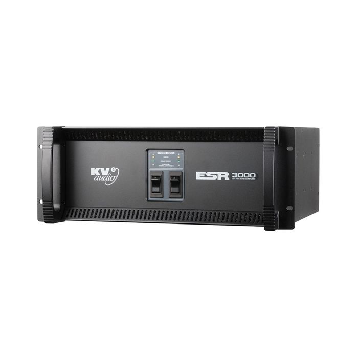 The ESR3000MkII is three-way, active control and amplification system specially designed for the KV2 Audio ESR full range series loudspeaker systems. It houses all signal processing and amplification, as well as providing control and crossover function an external subwoofer cabinet if needed utilizing an external amplifier. The ESR3000MkII powers the ESR215MkII. Each unit incorporates six amplifiers consisting of two 100-watt, Class AB, push pull, low intermodulation amplifier for high frequencies, two 200-watt, Class AB, push pull, low intermodulation design for mids and two a 1000-watt, high-efficiency, current- enhancing switch mode technology amplifier for bass. The ESR3000MkII stereo configuration powers two ESR cabinets accordingly.