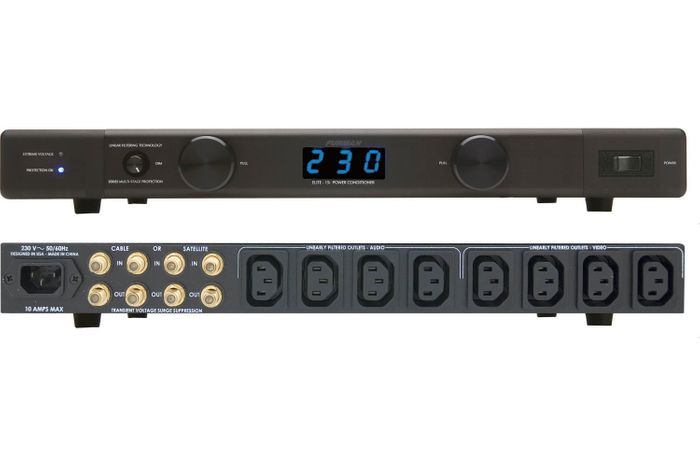 The extreme AC demands encountered in the professional audio/video arena have required technological developments far in excess of typical home theater/audiophile power products. In studios, live sound, and broadcast facilities, breakdown is unacceptable. Equipment failure or poor performance is costly. The same is true of today's home theater. Our solution based technology, extensive engineering expertise, and robust build quality have answered the challenge of today's corrupted power lines, and led to the creation of the Elite-10 E i.