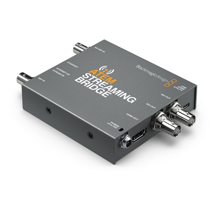 The ATEM Streaming Bridge, is a new converter that decodes the live stream from any ATEM Mini Pro model switcher and converts it back to SDI and HDMI video. The advantage of ATEM Streaming Bridge is broadcasters can use it to connect high quality video links direct from any ATEM Mini Pro studio. This allows broadcasters to access a wide range of talent, worldwide. ATEM Mini Pro's video stream is much higher quality than simple conferencing software, so customers get broadcast quality, clean of any streaming software vendor logo burn-in.