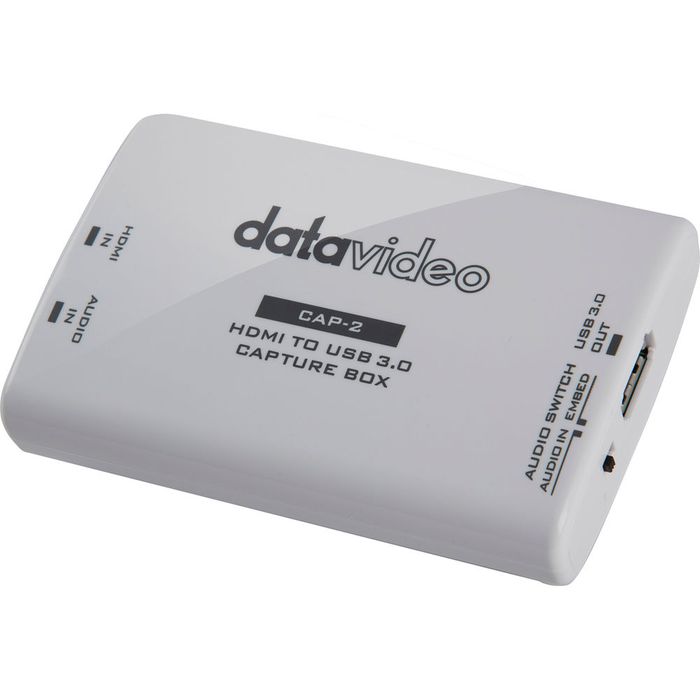 The Datavideo CAP-2 HDMI to USB 3.0 Capture Box allows you to capture uncompressed video with audio from your camera or deck's HDMI output on your computer for recording, editing, videoconferencing, and streaming applications. No driver installation is necessary (except with Windows 7). It features an HDMI input and loop-through output, and a USB 3.0 output. Compact in size and powered directly from a USB 3.0 port, the converter is a practical and easy-to-use USB 3.0 capture solution.