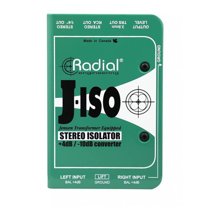 The Radial J-Iso™ and Pro-Iso™ are stereo line isolators designed to convert a professional +4dB line level balanced signal to an unbalanced -10dB consumer level device. This enables you to take the balanced output of a mixer and feed a consumer level recorder or audio input on a computer.