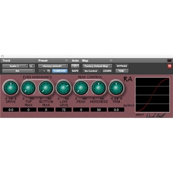 RA is a Nonlinear plug-in for the professional Audio Engineers that demand the most from their plug-ins. The plug-in can be thought of as an amplifier that is being over driven, (Wave Form Compression), but there is control over what part is being overdriven. An analogy from photography, it is like the curve function.