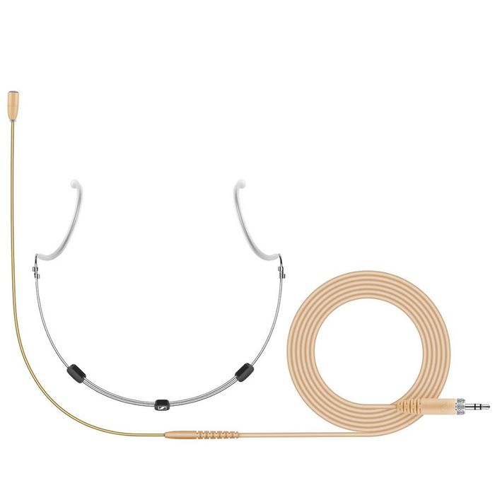 Headset microphone (omnidirectional, pre-polarized condenser) with 1.6m cable for XS Wireless and evolution wireless, beige. Includes (1) HSP Essential omni-beige with 3.5mm jack, (1) SL MZW 1 foam windscreen and (1) soft pouch