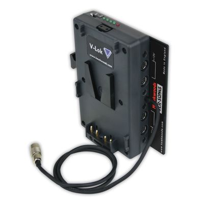 Hawk-Woods VLR-SQN4S (VLRSQN4S) V-Lok to Cable SQN / 4 Sw-Hirose / Power-Con / Regulated . The stand-alone VLR-SQN4S V-Lok adaptor is an ideal option for sound recordists. It offers battery power distribution via a power-con socket, four regulated switchable hirose sockets and a Hirose plug on a flying lead.