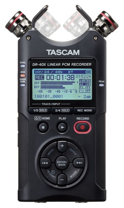 The DR-40X is a versatile four-track audio recorder for music, podcasting, cinema and any other application requiring high-quality audio. Building on the highly successful Tascam DR-40, this recorder adds several new functions to the already comprehensive feature set.