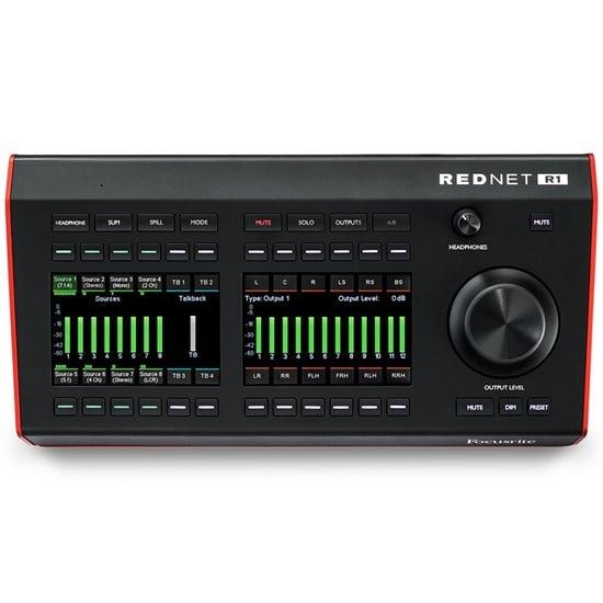 RedNet R1 is designed for professionals who need to adapt their audio configurations quickly to suit the ever-increasing demands of the studio environment, and interact with their audio system like never before. Inputs from one of eight channels (from 32 possible sources) can be mixed and routed to up to 12 monitor output channels, formatted from mono through to 7.1.4 surround, providing the flexibility to monitor in a range of common setups including Dolby Atmos® and other immersive audio workflows. Alternatively, completely custom setups of up to 12 outputs can be configured for bespoke speaker configurations.