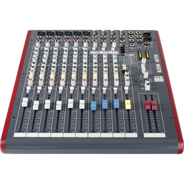 The multipurpose Allen & Heath ZED-12FX mixer combines six mic/line inputs, three stereo inputs for effect returns and portable music players or keyboards, a 24-bit effects processor, and a USB digital audio interface compatible with Mac and Windows computers-in a compact and portable package small enough for carrying to your gig, whether recording live or in the studio.