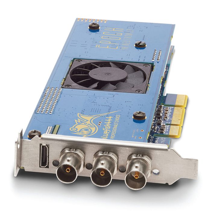The 4K Neutron LP is an internal low-profile half-height, half-length 4-lane PCIe card compatible with Windows, Mac, and Linux systems, but it can also be installed in optional Thunderbolt enclosures from Sonnet and other brands for alternate multimedia workflow options, including integration with a second PCIe card, such as a PCIe-based SSD drive or RAID controller. Included with the card is a free download of the Bluefish444 IngeSTore acquisition software and Bluefish444 cross-platform SDK.
