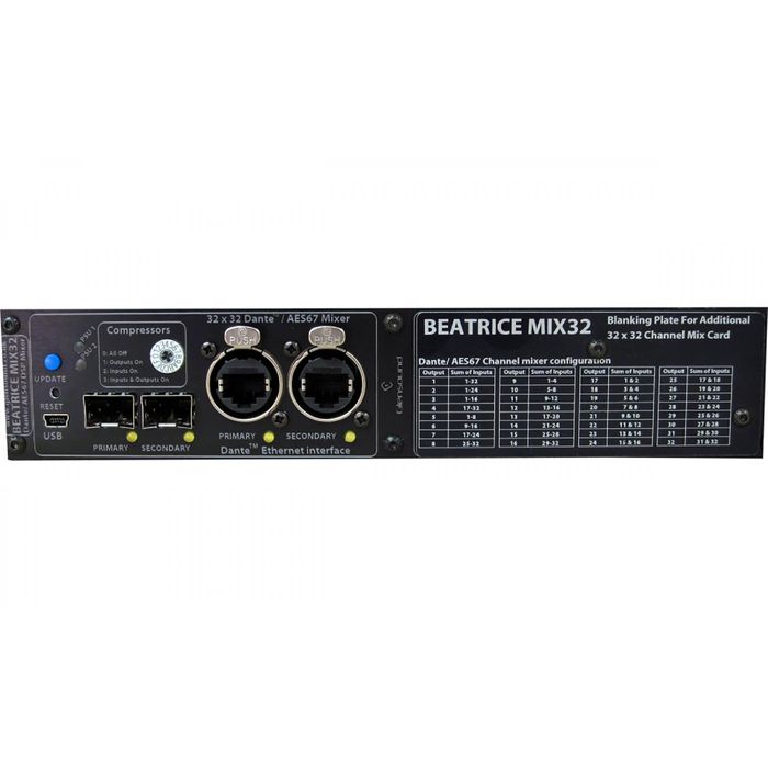 The BEATRICE MIX32 is supplied with just 1 of 32 x 32 channel mixer. Extra mixer cards can be factory fitted at the time of order or can be retro fitted into existing BEATRICE MIX32 racks.
