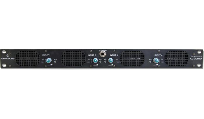 The 4 loudspeakers are each fed from their own pair of balanced audio inputs on rear panel XLR connectors. Each channel has a front panel audio presence indicator and input peak Led and an illuminated channel mute switch. Front panel volume controls adjust the audio output of the speakers and the headphone circuit.