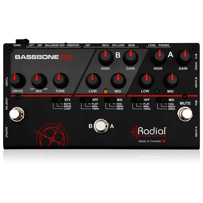 Radial Bassbone OD 2 ch bass preamp w overdrive. FX loop, DI