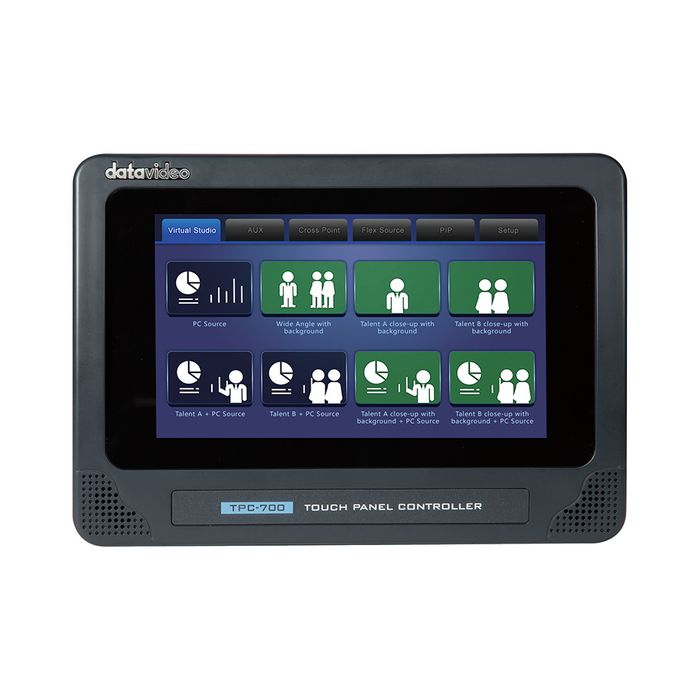 Multi-camera Virtual Studio switching, AUX output, Crosspoint, Flex Source, and PIP assignment can be done by TPC-700.