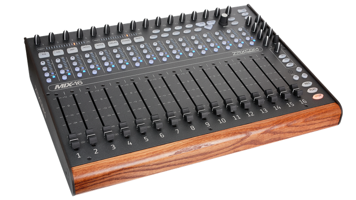 Mix-16 has the ability to control the ZaxNet remote control function of Deva 24. Pre amp gain adjustments can be sent directly to Zaxcom Digital Recording Wireless transmitters from the input control pots on the control surface during a live recording.