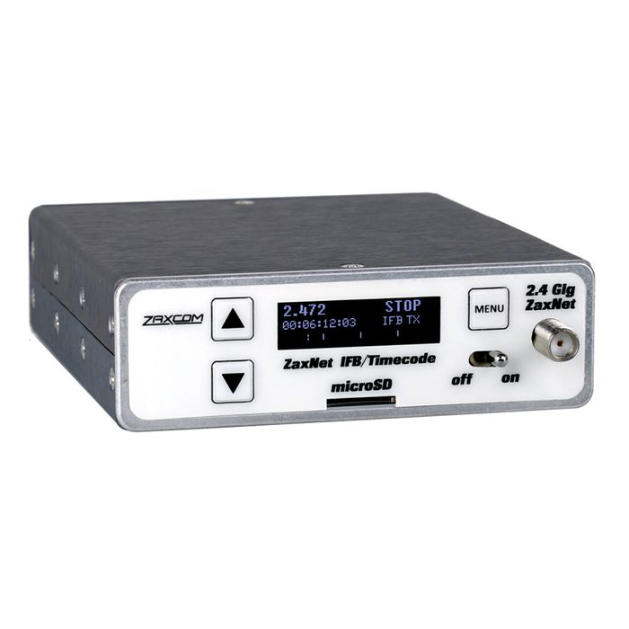 The IFB300 is a ZaxNet™ transmitter that sends high-quality, fully encrypted IFB audio, timecode, and remote control commands to Zaxcom Digital Recording Wireless transmitters and ERX receivers. The signals are carried on a single RF channel ocer 2.4 GHz which can be used license-free in almost any country.