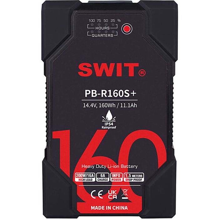 PB-R160S+ supports 6A fast charging by SWIT PC-P461S or S-3812S fast charger, to save more than 50% charging time. The 160Wh PB-R160S+ battery can be charged from 0 to 80% after 1.5 hours, and fully charged within 2.5 hours.