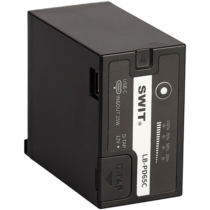 LB-PD65C is a 65Wh large capacity Panasonic AG-VBR59 compatible battery with regulated 12V D-tap output and 25W USB-C in/out, diversity power for camera top devices.