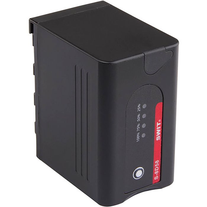 The S-8D58 can be charged on Panasonic original charger DE-A88, and SWIT also provides the Dual channel charger S-3602D or 4-ch charger LC-D421 for S-8D58, will take about 4 hours to charge from empty to 100%