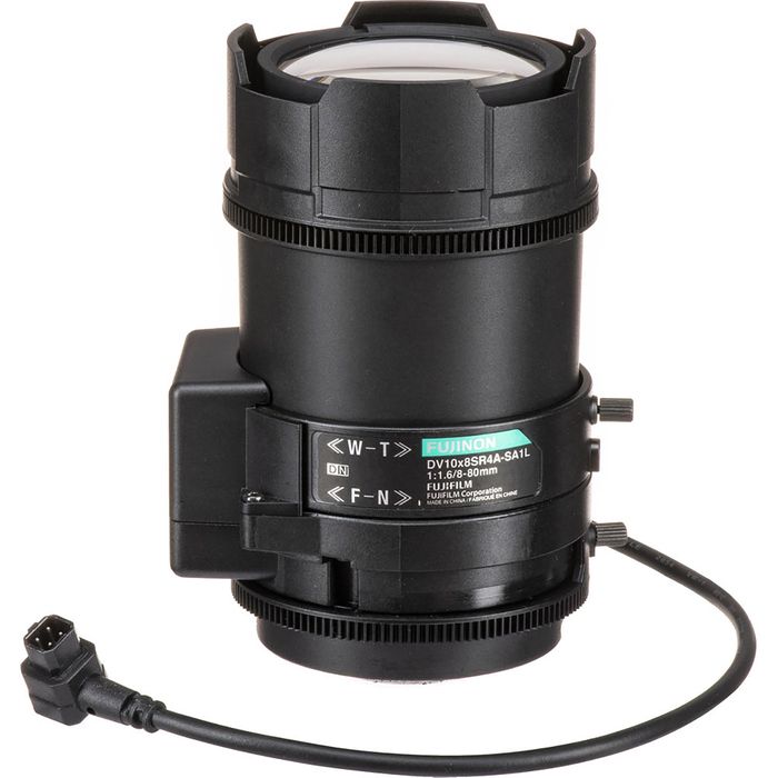 The VS-M880-A CS-Mount 8-80mm Varifocal Lens with Long Cable from Marshall Electronics is designed for use with 3MP resolution cameras that have a 1/3 or 1/2" sensor. This varifocal lens has an 8-80mm focal length that delivers 38 to 3° horizontal field of view for 1/3" sensors and a 50 to 5° horizontal field of view for 1/2" sensors. It features a DC auto iris, along with manual focus and zoom operation with lock screws.