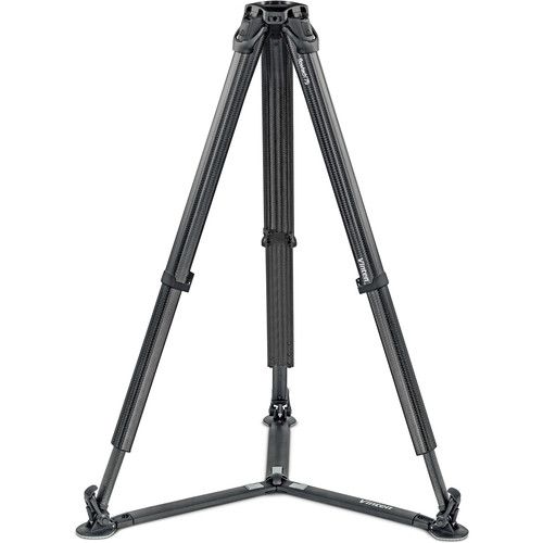 The Vinten flowtech 75 Carbon Fiber Tripod with Ground Spreader eschews the common single or double carbon fiber tube design; instead it has redesigned the shape of the legs for improved torsional strength. The legs weigh just 3kg, yet they can support a payload of up to 20kg, and extend from a minimum height of 40cm to a maximum height of 158cm when using the included removable ground spreader. Each leg features a single clamping lever that locks and unlocks the sections.