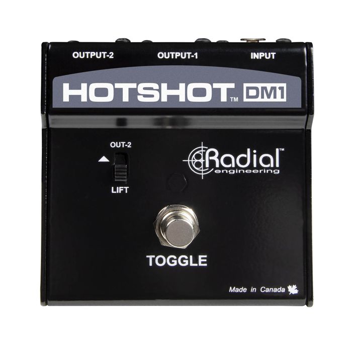 The HotShot DM-1™ is a dynamic microphone switcher with a momentary toggle footswitch, allowing an artist on stage to redirect a vocal mic to feed the stage monitoring system and communicate with band members or technicians.