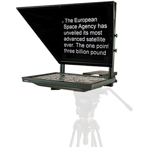 The prompter features a 70/30 beamsplitter glass paired with a 300 cd/m² brightness monitor with a 400:1 contrast ratio, which provides an average talent reading range of up to 22 feet, and requires no counterweights with most cameras. The package includes a Windows-compatible prompting software that features dual-screen display, supports all Windows OS languages, is keyboard controllable, and can interface with optionally available prompting controllers.
