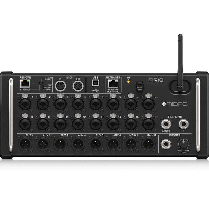 Combining 16 award-winning Midas Pro microphone preamplifiers, four amazing DSP engines, extensive control options, and a full 18-channel audio interface, the Midas MR18 isn't just a killer digital mixer for live sound, it's also an amazing addition to your recording studio.