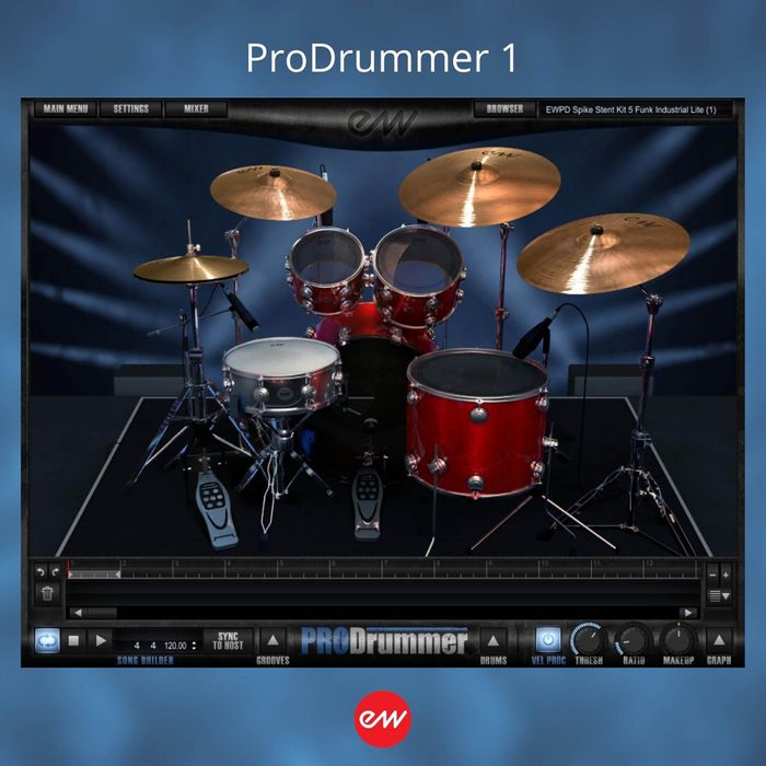 ProDrummer Volume 1 includes approx. 60 Gigabytes of Drum Kits and MIDI drum grooves produced by Mark "Spike" Stent and multi-award winning EastWest producer Doug Rogers, with drums played by Steven Sidelnyk (Madonna, Seal, Massive Attack).