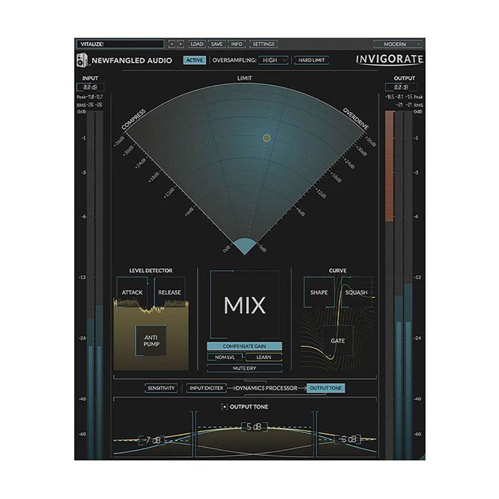 Here’s a little secret: compression, limiting, and overdrive are all the same thing—and all of them can be used to add energy and excitement to your music. Invigorate is a deconstructed compressor, limiter, and overdrive distortion fine-tuned to add life to your mix, drum bus, or any other element. The intuitive design allows you to effortlessly morph from pumping compression, through hard-hitting limiting, to rich distortion while dialing in the perfect sound with the prominent MIX control. The result is guaranteed to bring your mix forward and make it sound bigger.