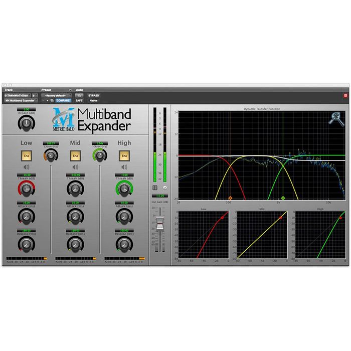 Metric Halo Multiband Expander is a plug-in that allows you to manage, suppress and control noise in your tracks in a frequency-sensitive way. The 3-band phase-coherent crossover network directs the audio to three independent expanders that you configure to smoothly suppress noise below the threshold you specify. The expanders can also be configured to change the feel of rhythmic patterns by suppressing elements that are played more softly – all in a frequency-sensitive way.