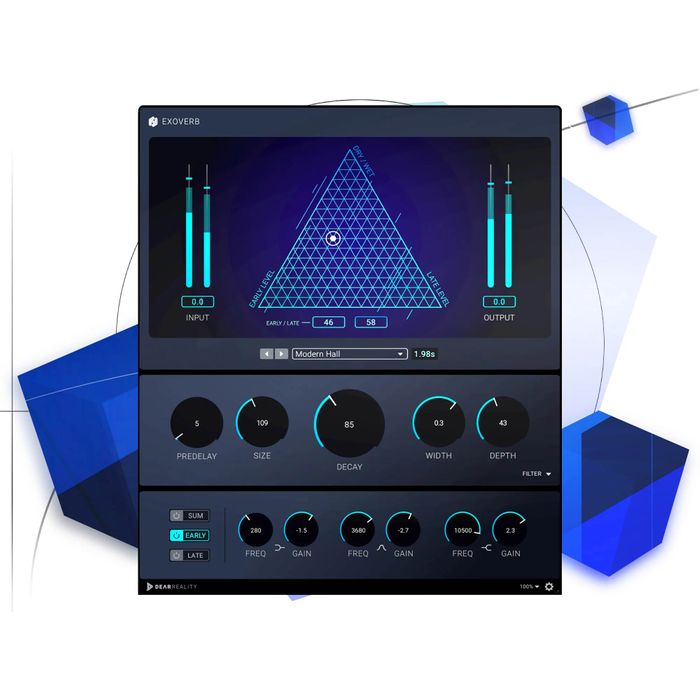 EXOVERB follows Dear Reality’s easy-to-use approach, providing direct access to commonly used functionalities like Pre-Delay, Size, and Decay.