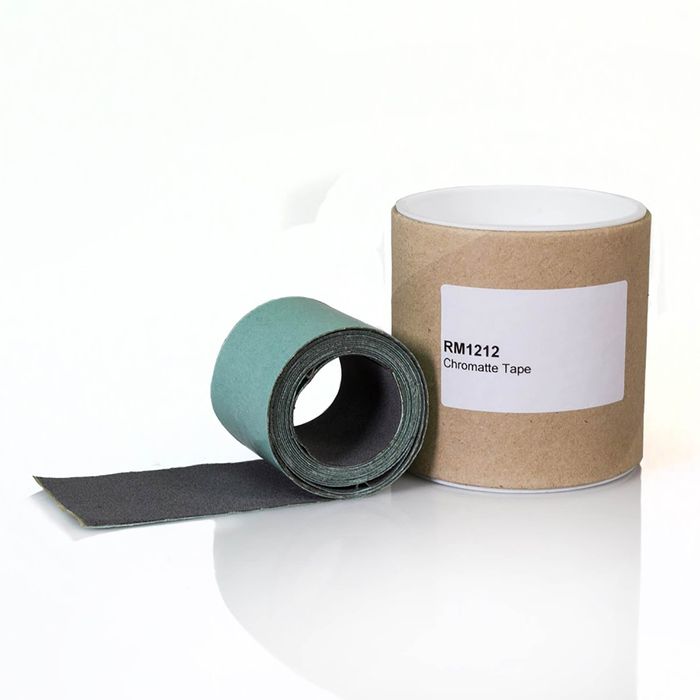 The Reflecmedia Chromatte Tape has the same surface as the Chromatte glass-beaded fabric background. It has an adhesive backing, and it is a 5cm wide x 2.1m long roll.