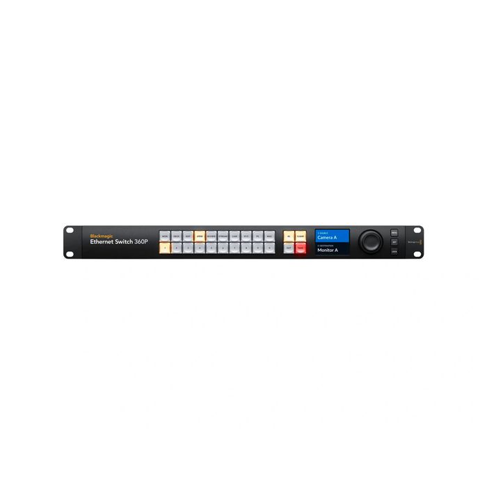 The Blackmagic Ethernet Switch 360P is the industry's pioneering Ethernet switch, tailored specifically for the television sector. It boasts exceptional performance and minimal latency. Located at the rear, all Ethernet connections are neatly concealed and more secure. Equipped with 16 high-speed 10G Ethernet ports and 2 ultra-fast 100G Ethernet QSFP sockets that support both copper cables and optical fiber modules. With a user-friendly router panel conveniently integrated on the front, configuring 2110 IP multicasting using familiar video routing becomes effortless, eliminating the need for an IT team. Seamlessly routing SMPTE-2110 is made simple with this plug and play solution, equipped with all the essential elements for television production.