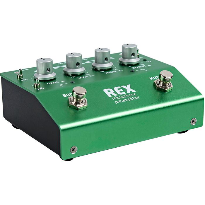 This all-in-one compact foot pedal enables singers and musicians to plug their favorite microphone into a Grace Design mic preamp. You can tweak and perfect your own sound onstage or in the studio using powerful controls including high and low shelving EQs, a switchable 75 Hz high-pass filter, and a 10 dB variable Boost. With your own effect pedals inserted in the FX loop, you can also control your reverb, wah, distortion, and other effects, however you want. Two footswitches enable you to quickly activate the Boost effect and mute your signal—great when tuning. Flexible connectivity options include a balanced XLR DI output and a 1/4" amp output. REX is powered via the included AC adapter.