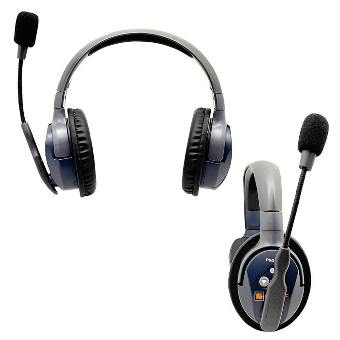 These full duplex team communication headsets that allow users to talk simultaneously and hands free either on two separate channels or altogether in a 16-user conference.