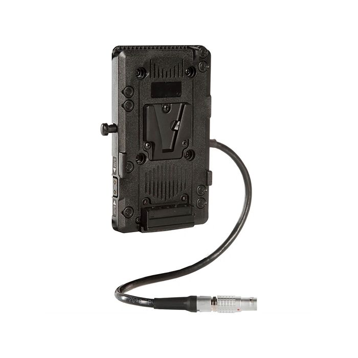 The V-Lock Plate incorporates a D-Tap port with a maximum 50 W output for powering accessories. A DC camera power cable and four plate-mounting screws are included with the plate.