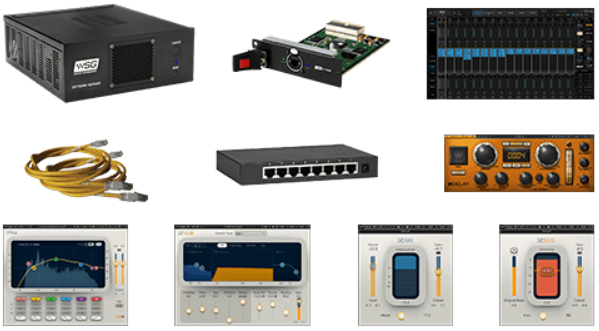 This combo includes the WSG-HY128 I/O card, the SoundGrid Extreme Server-C, an 8-port network switch, three Cat 6 network cables, the SuperRack SoundGrid application for running plugins live on your console, and five must-have plugins for live mixing.