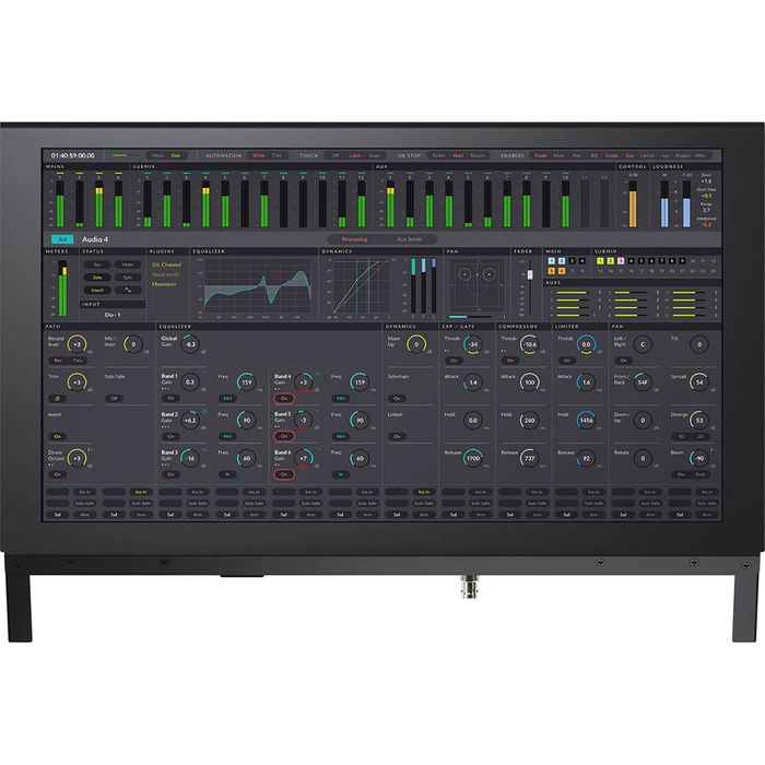 The Fairlight Console LCD Monitor is its own self-contained computer running Blackmagic OS, giving you instant graphic feedback for all channels in its corresponding module. It can display channel information, the DaVinci Resolve user interface, plug-in interfaces, or video previews.