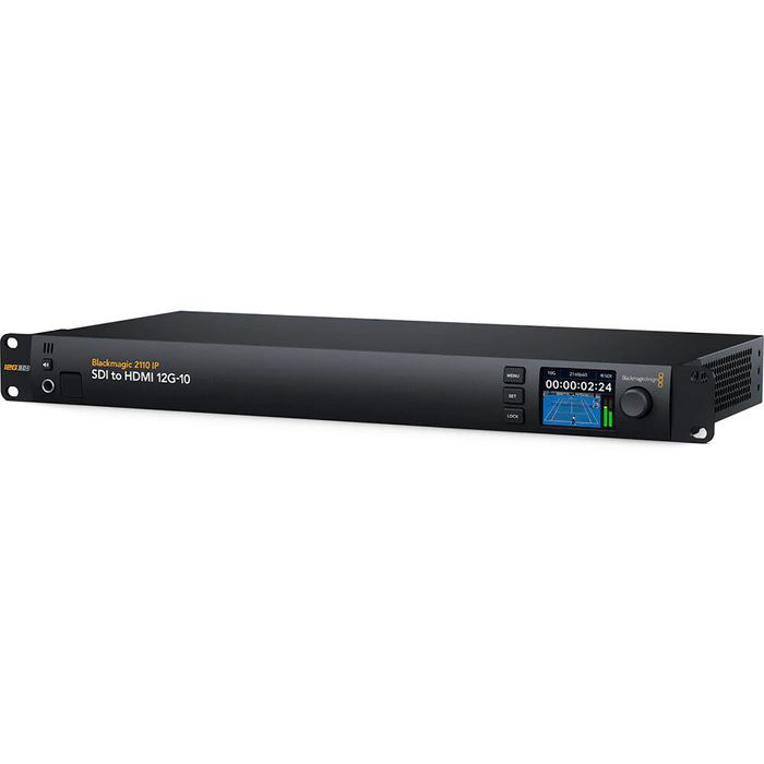 The 2110 IP SDI to HDMI 12G-10 Converter from Blackmagic Design converts signals from 12G-SDI or 2110 IP to HDMI to facilitate the usage of the latest OLED displays for color-accurate monitoring, color grading, or editing. ten XLR analog outputs provide ten channels of audio monitoring via optional external speakers. A headphone jack on the front panel allows users to monitor audio in a more conservative manner for applications where multiple operators are working on projects side by side.