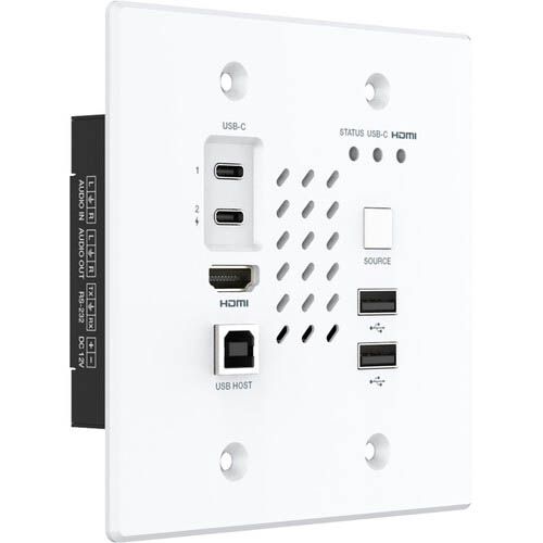 The CHAZY 4K Wall Plate TX from Turtle AV is a Dante AV-A and JPEG 2000 encoder that fits inside a standard 2-gang wall box. This 2-gang Decora-style wall plate features a variety of input and output ports, allowing seamless transmission of 2160p60 Hz 4:4:4 HDR video from laptops or tablets via USB-C and from video sources via the HDMI 2.0b input. It includes the Dante AV-A license, which also has a 2 x 2 Dante audio license. PoE powered and supporting a wide range of audio formats, including 7.1 Dolby Atomos, the transmission wall plate features advanced capabilities like KVM, video wall configurations up to 9 x 9, hardware scaling, EDID management, HDCP 2.2, and true multicast support.